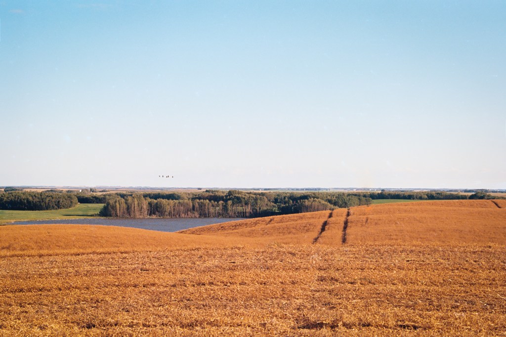 August brings the end of summer to the Canadian prairies; it also brings the migrating birds from the north such as Canadian Geese and the start of harvest. Field peas are the first to do and this field was ready to go.
