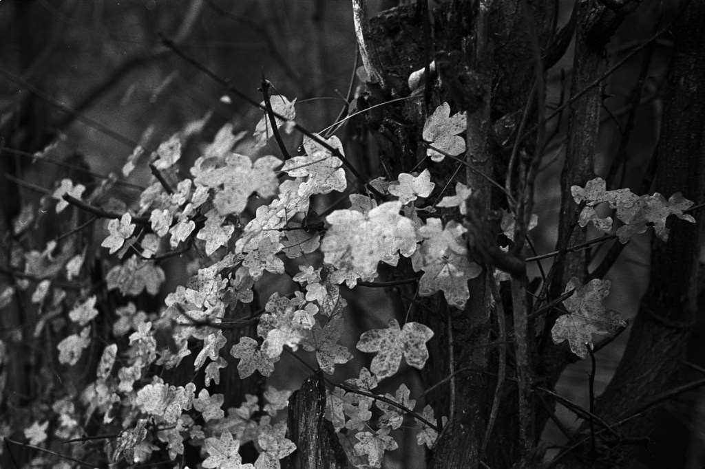 For the December theme I wanted to shoot something that was going to be special, but did not find all that much special subjects and I was afraid that I needed a close-up filter. But as was the case for November, I wanted to shoot with what I had set out to shoot, and that was the base lens. I had the camera with me for the first 2 weeks of December and by the end of the second week I had found that special subject. I must have forgotten since last year, but the yellow of the leaves on black-and-white film is just awesome. I found some oak trees in a park and at the base of one there were the last leaves of this year, some leftover from autumn. I snapped 5 or 6 frames to make sure I got what I needed and went home happy. After I scanned the negatives I saw how bright and distinctive that yellow looks. This is to end FFP 2020 in style.