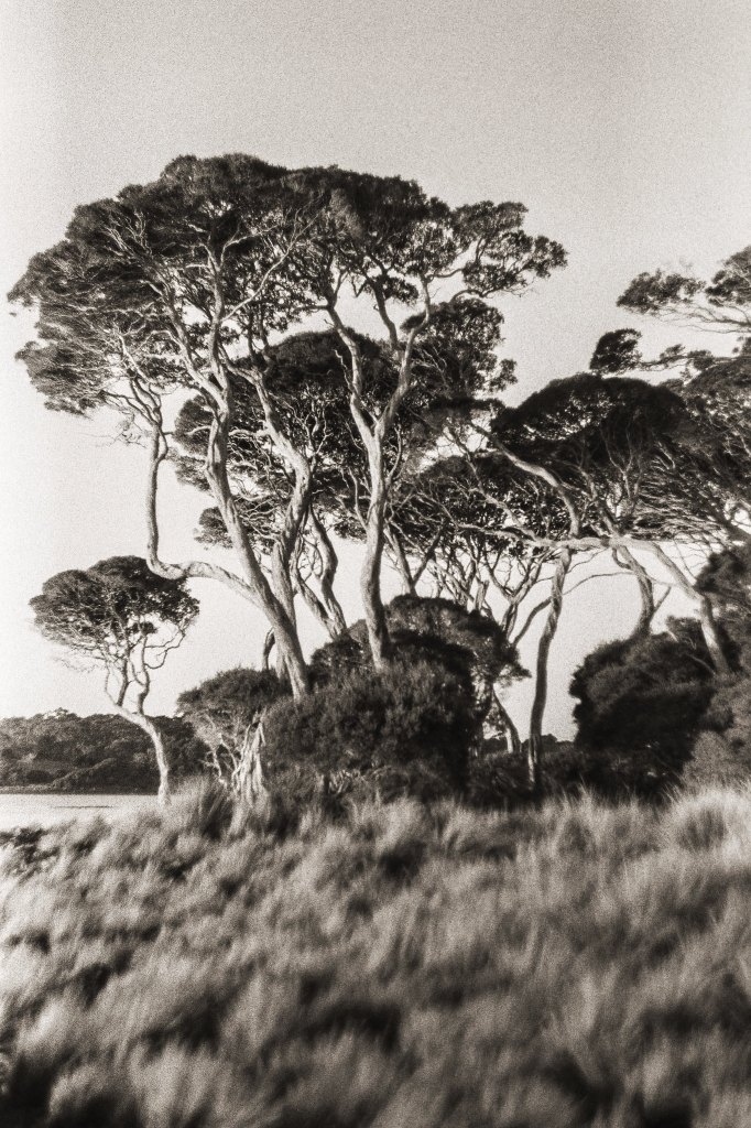 The boy was likewise warned by the male elders who said he was getting lazy and neglecting his people. Eventually the women folk had enough of the girl always disappearing. She was banished from the tribe. At the same time, the elders sent the boy away. They were both very distressed and ran to the highest hill on the island. Upon seeing each other they fell into one anothers arms. At once they were frozen in their embrace and branches sprouted from their hair and tiny leaves formed on the tips. From that time on, they were called Moonar’mia, or the Moonah tree. They can still be seen today in their embrace, as can all their Moonah babies on Phillip Island.